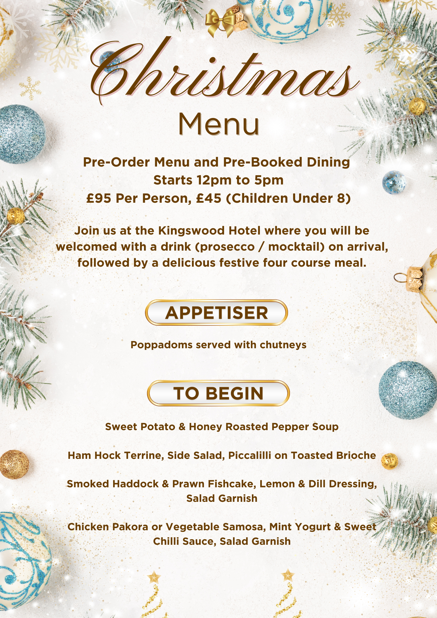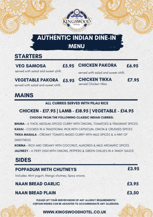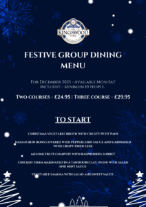 Christmas Day Menu Festive Group Dining Menu Restaurant Menu Festive Afternoon Tea Indian Menu Festive Restaurant Menu Sunday High Tea Kids Menu Breakfast Menu Afternoon Tea Lunch Menu LUNCH MENU Kingswood Hotel Takeaway Spice Up Friday – Lavish Buffet